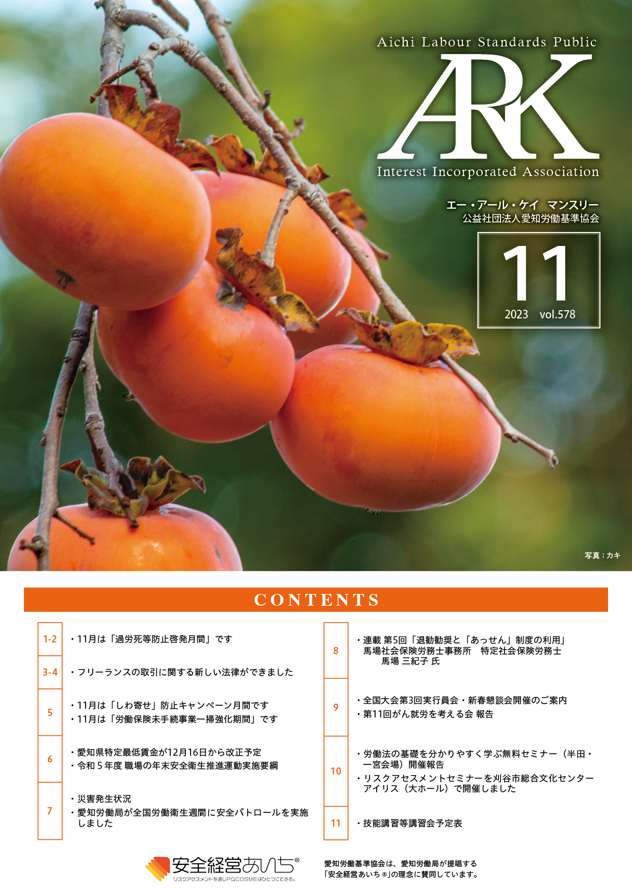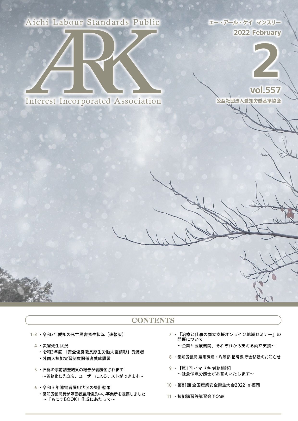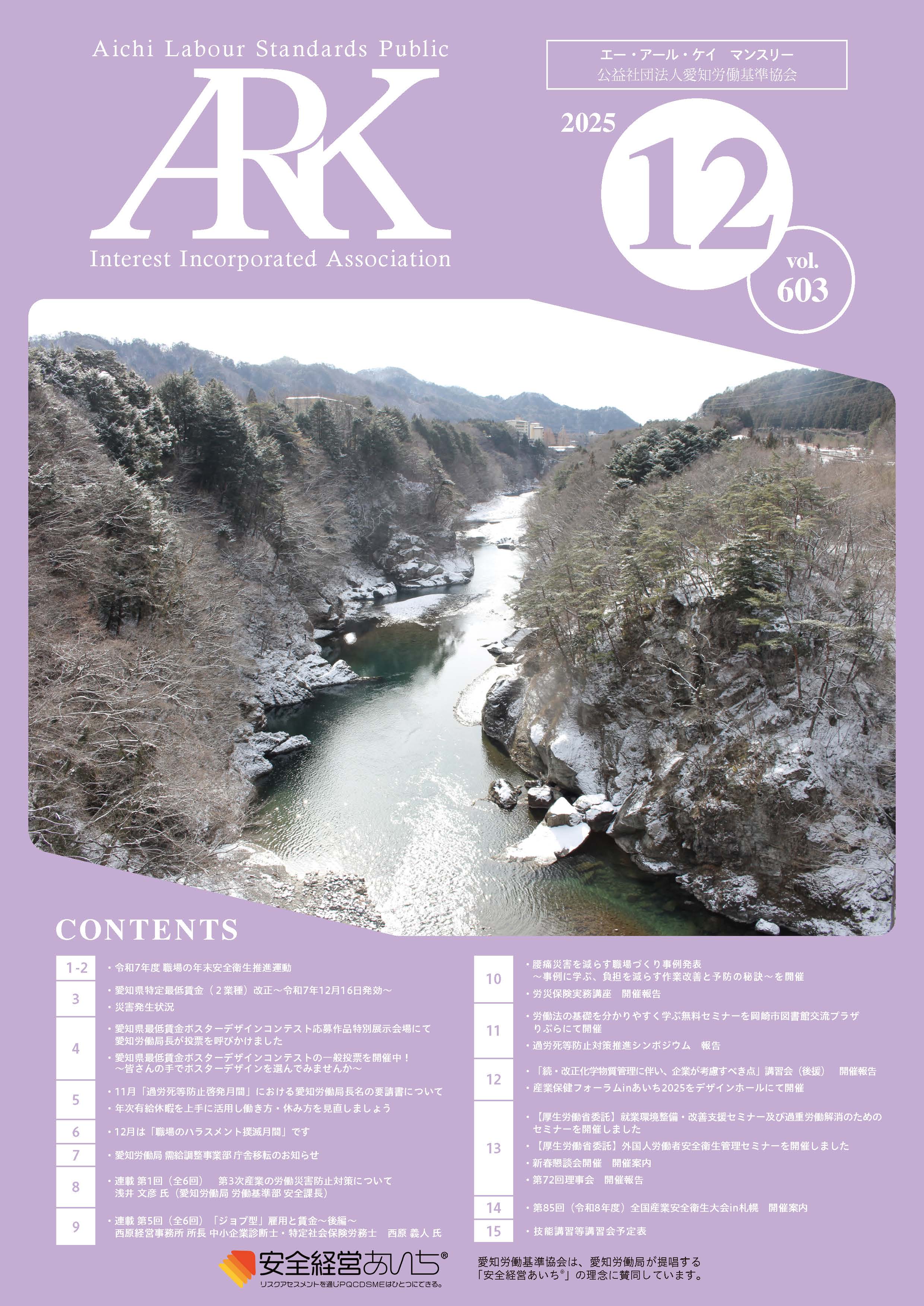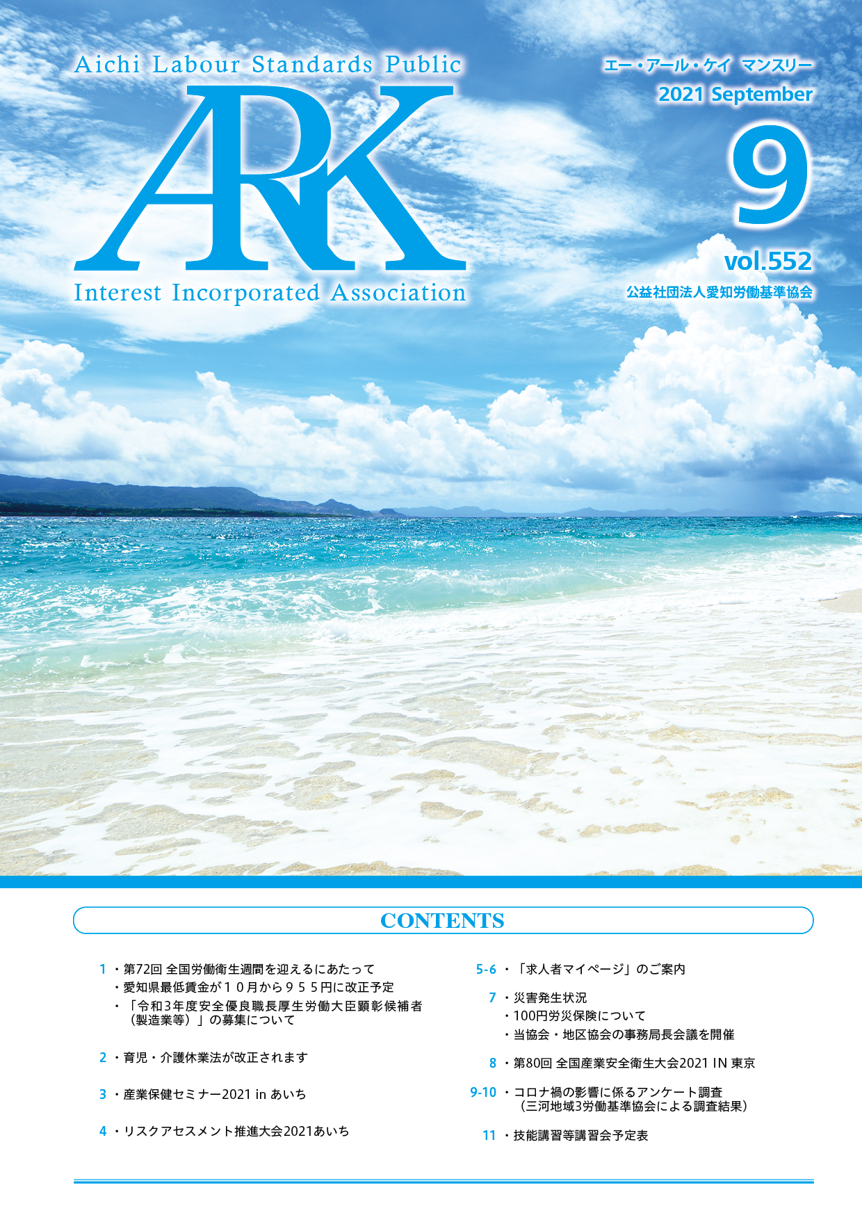 愛知労働基準協会では会報誌「ARKマンスリー」を発行しています。バックナンバーをご覧いただけます。
