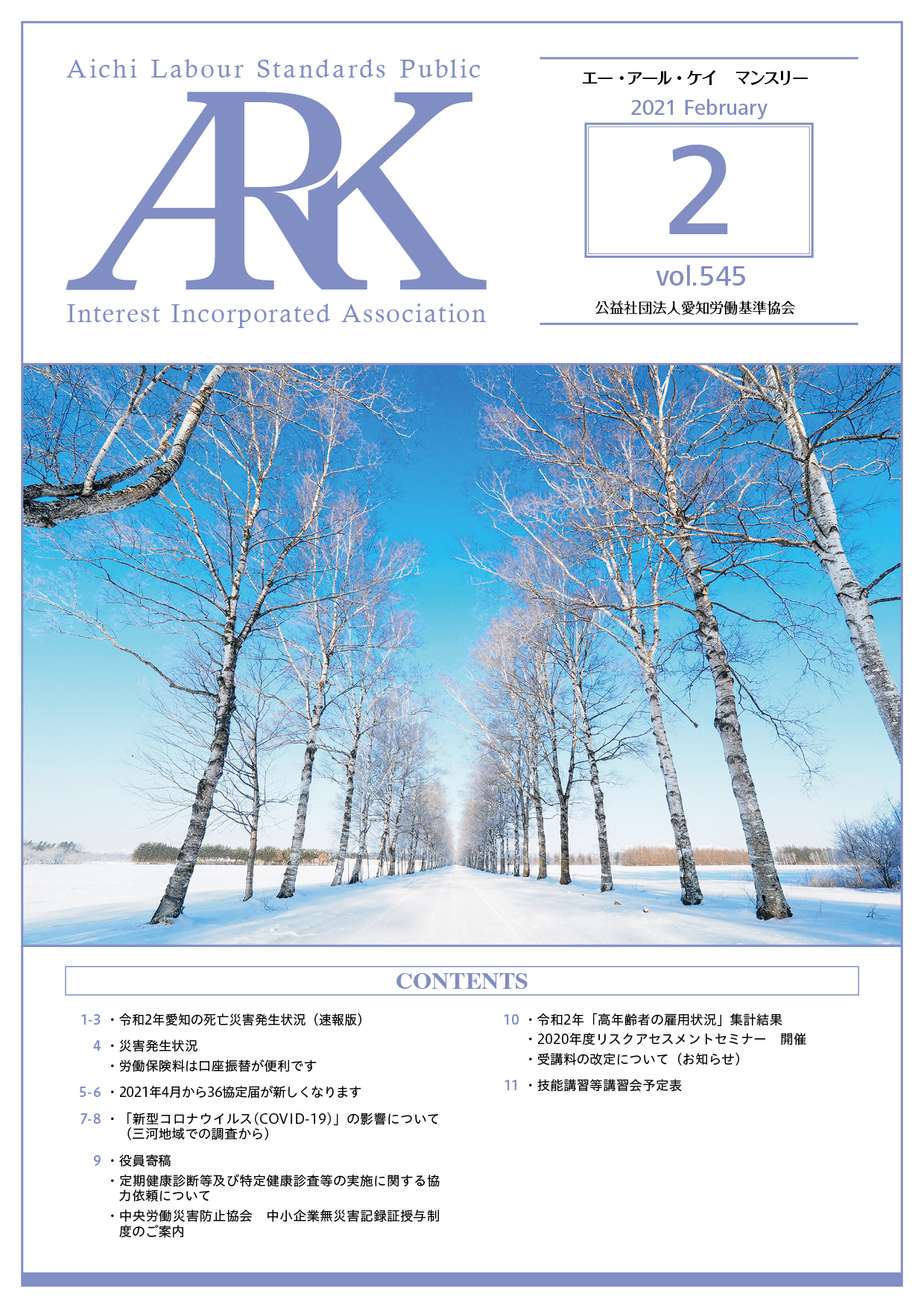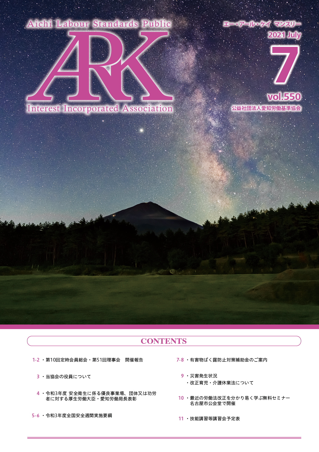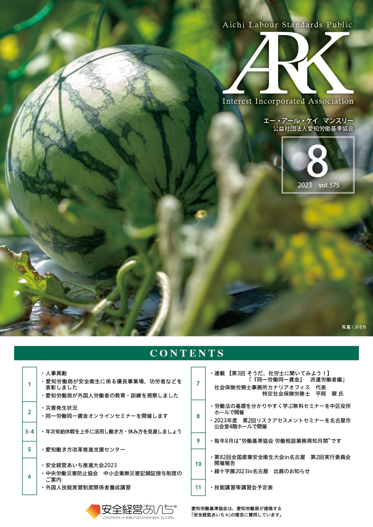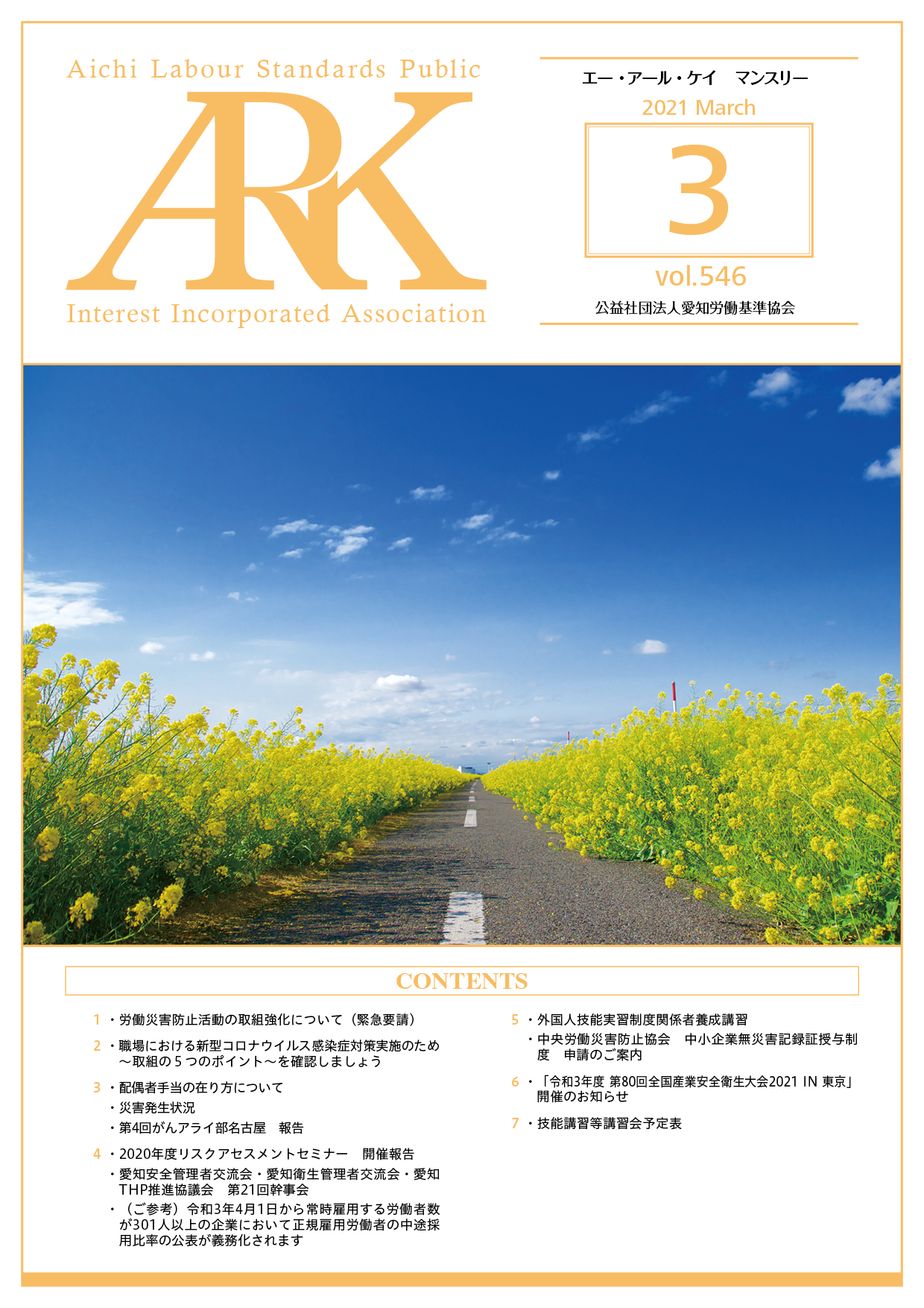 愛知労働基準協会では会報誌「ARKマンスリー」を発行しています。バックナンバーをご覧いただけます。