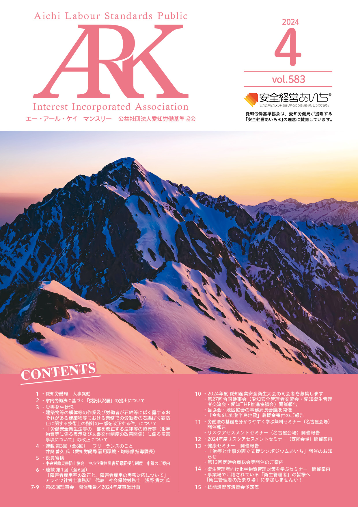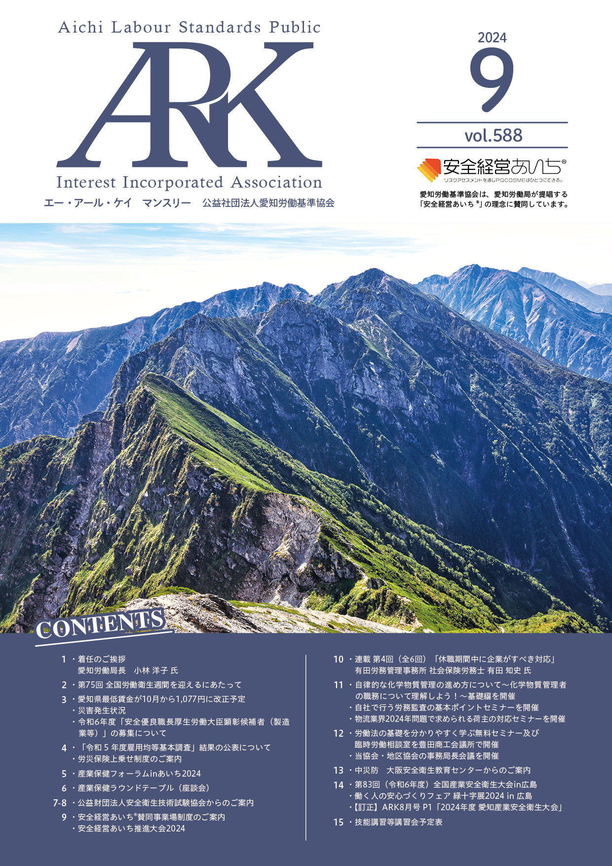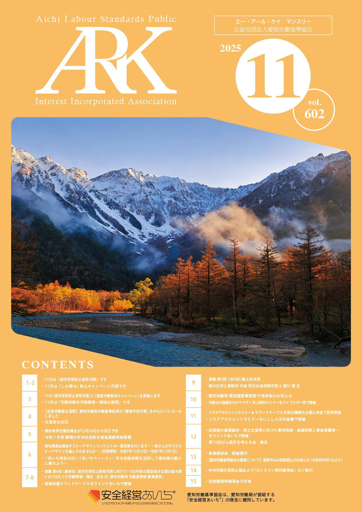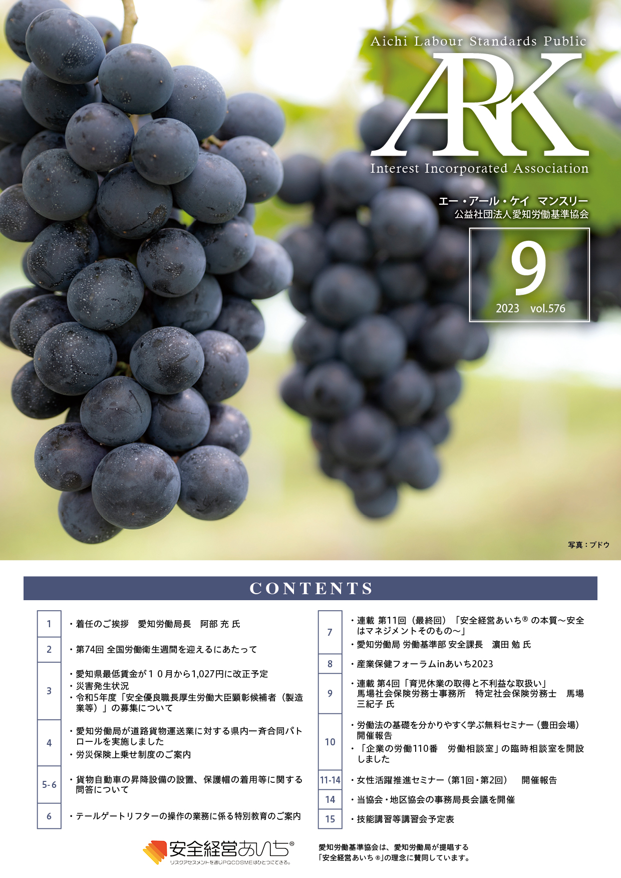 愛知労働基準協会では会報誌「ARKマンスリー」を発行しています。バックナンバーをご覧いただけます。