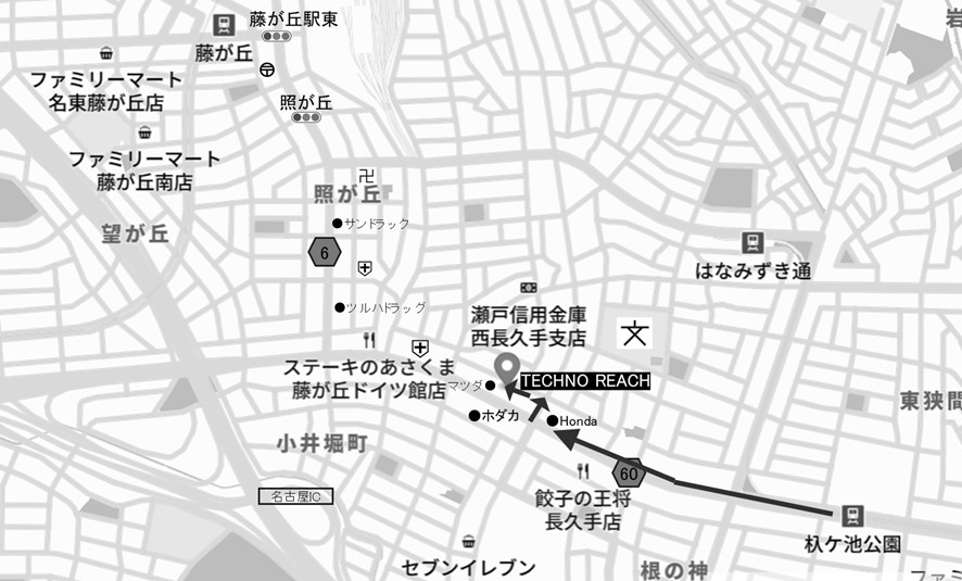 ・少し進むと、左側に「株式会社TECHNO REACH 本社があります。