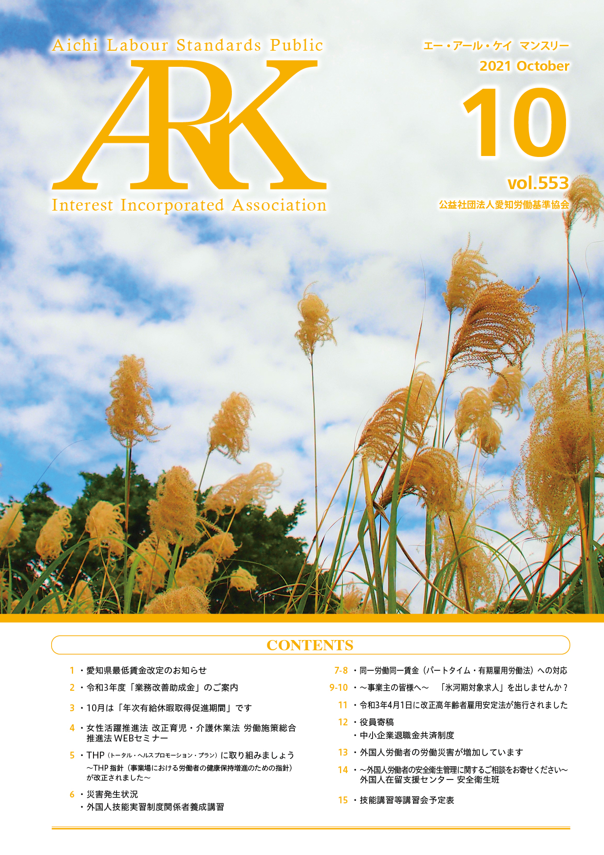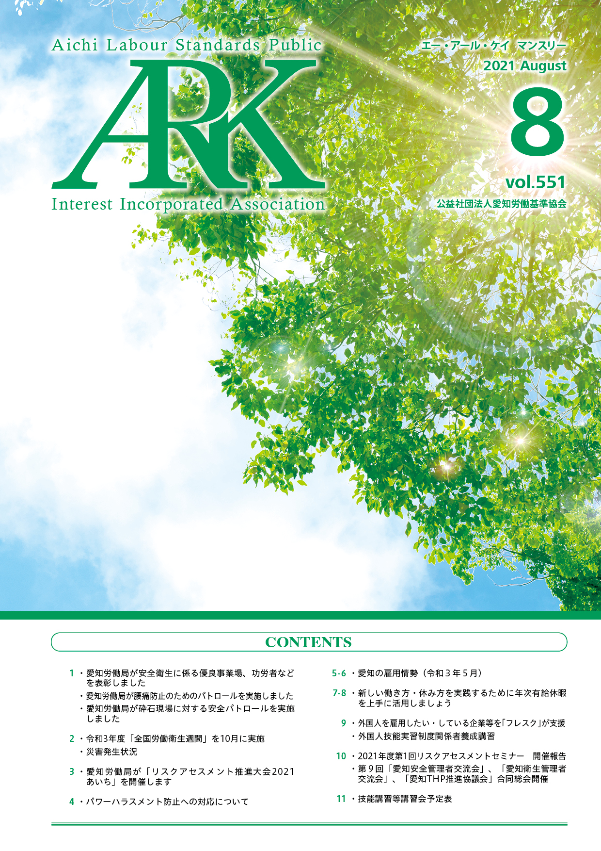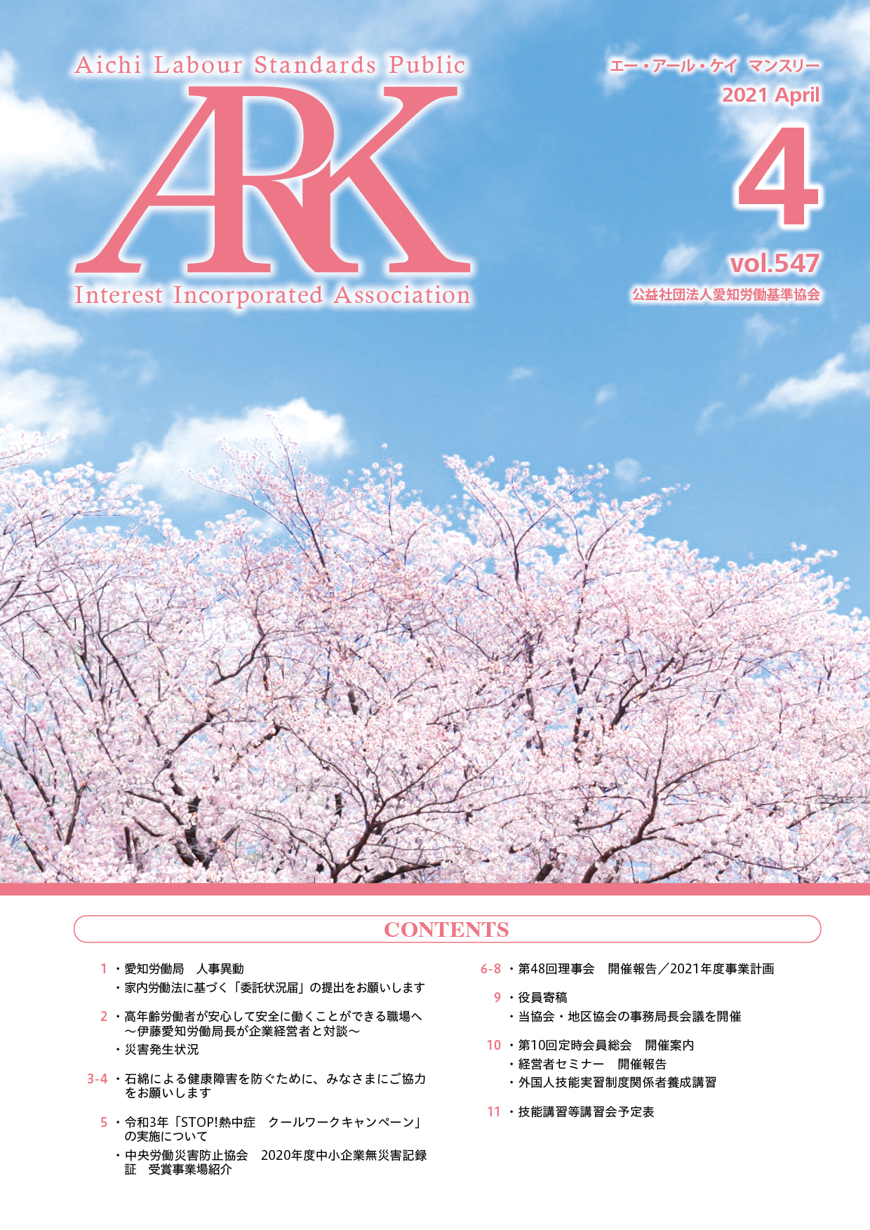 愛知労働基準協会では会報誌「ARKマンスリー」を発行しています。バックナンバーをご覧いただけます。