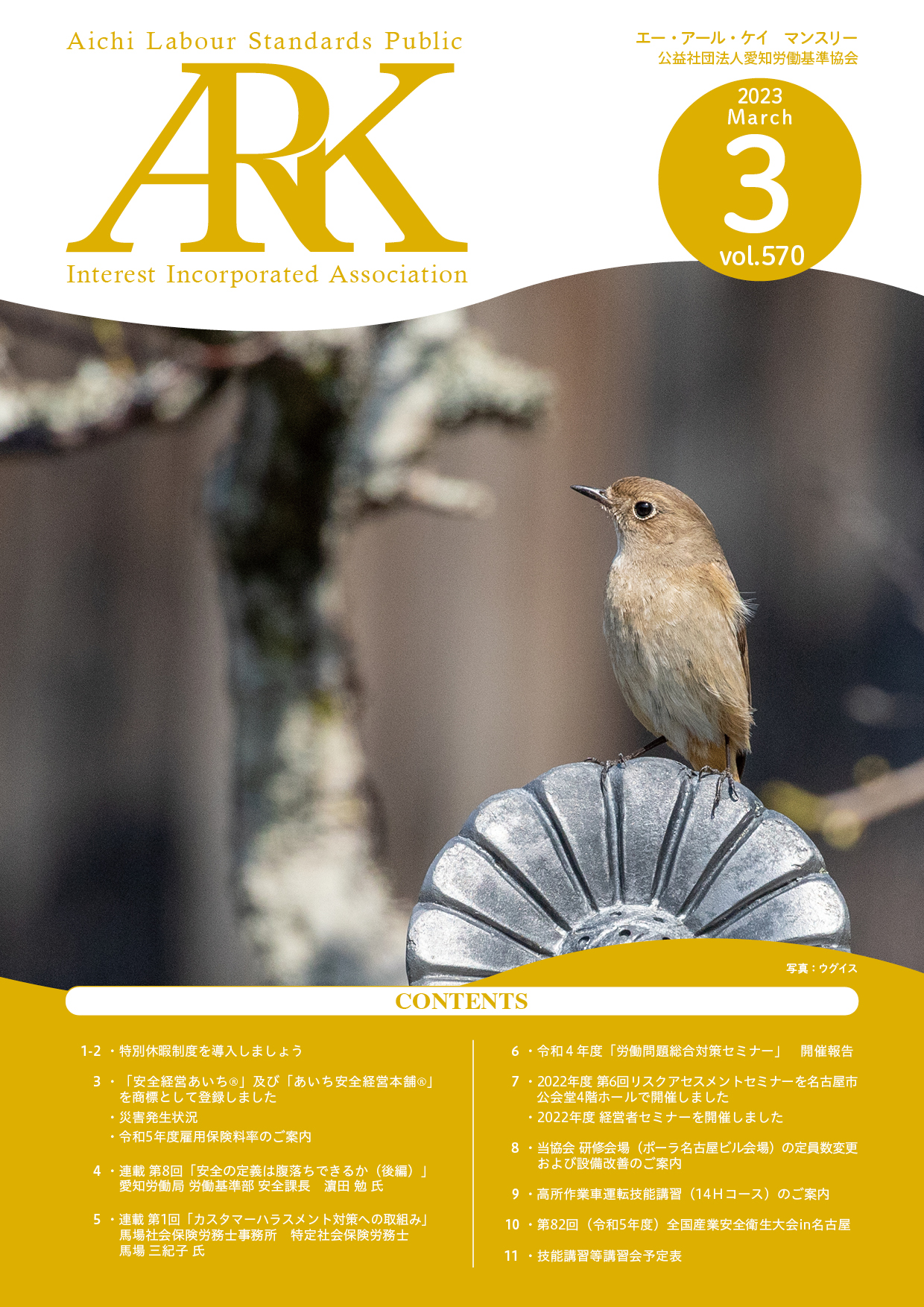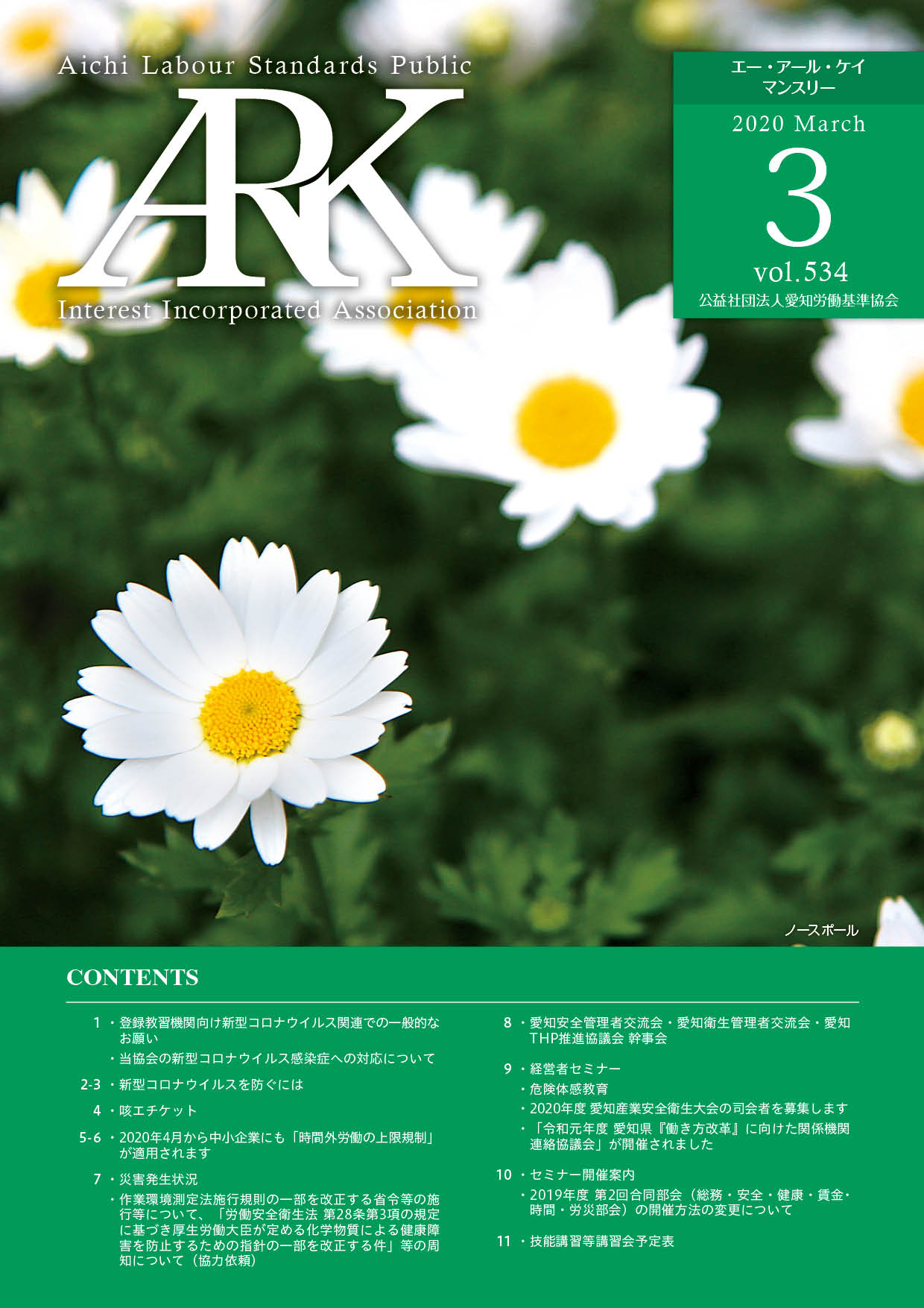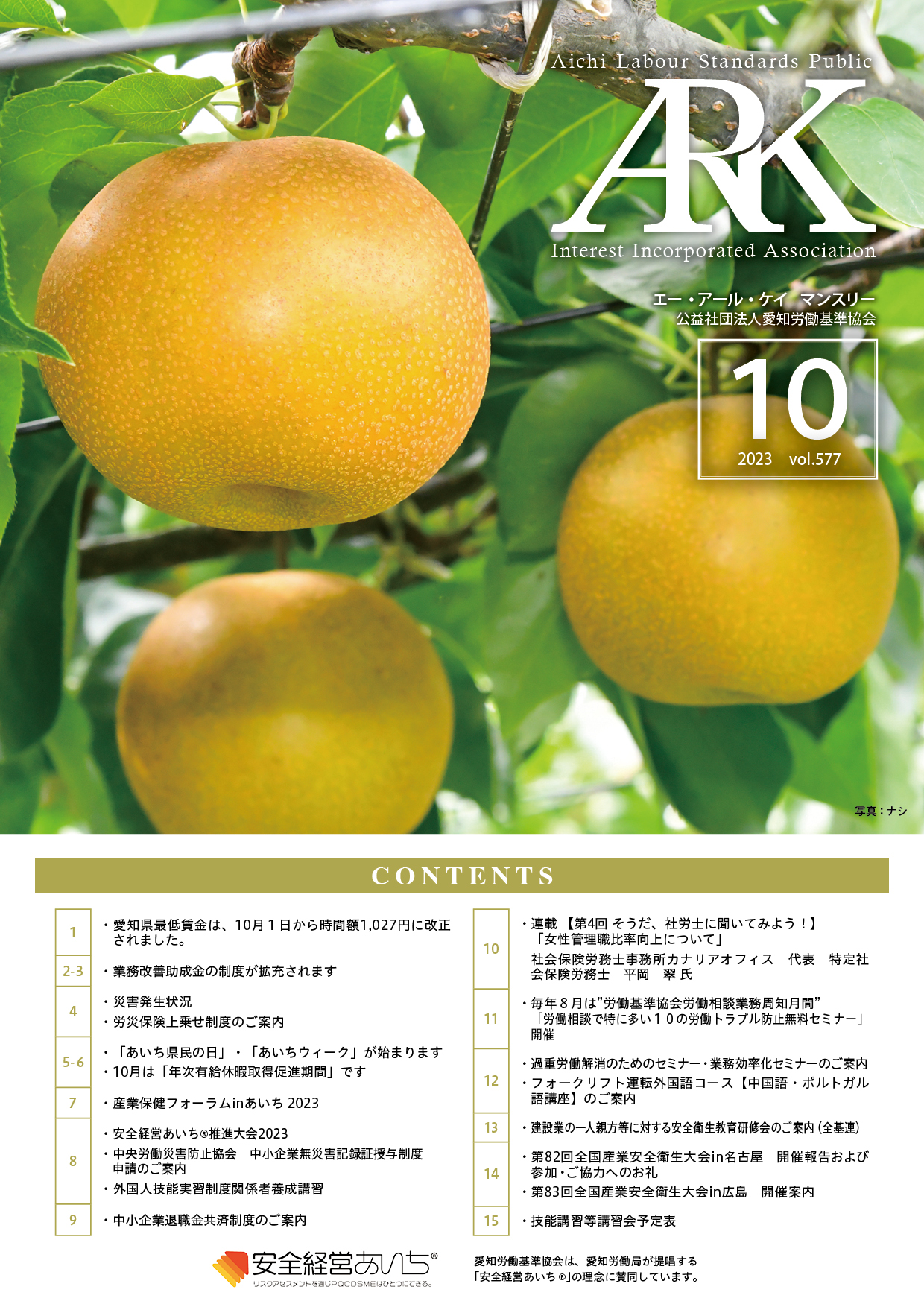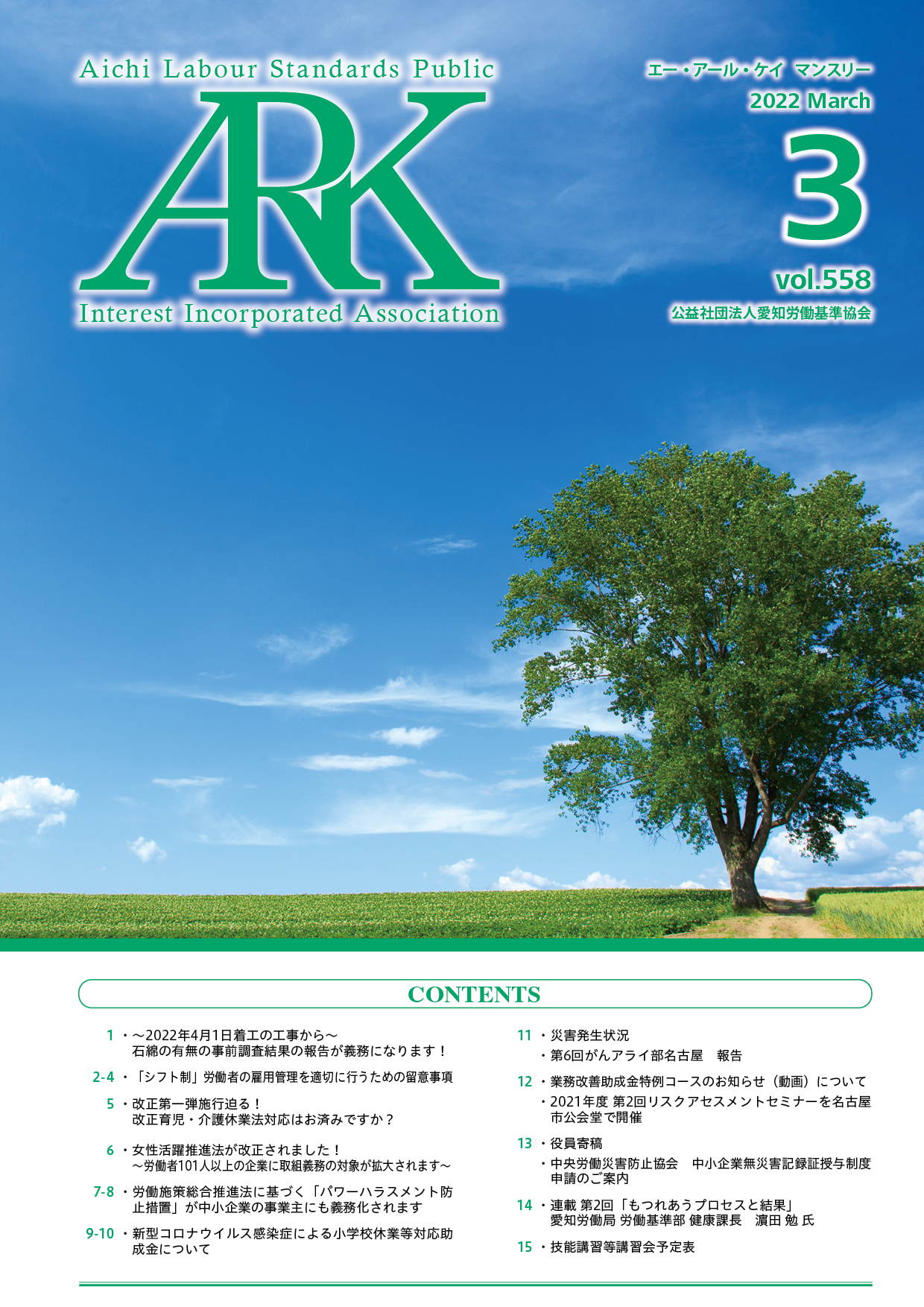 愛知労働基準協会では会報誌「ARKマンスリー」を発行しています。バックナンバーをご覧いただけます。
